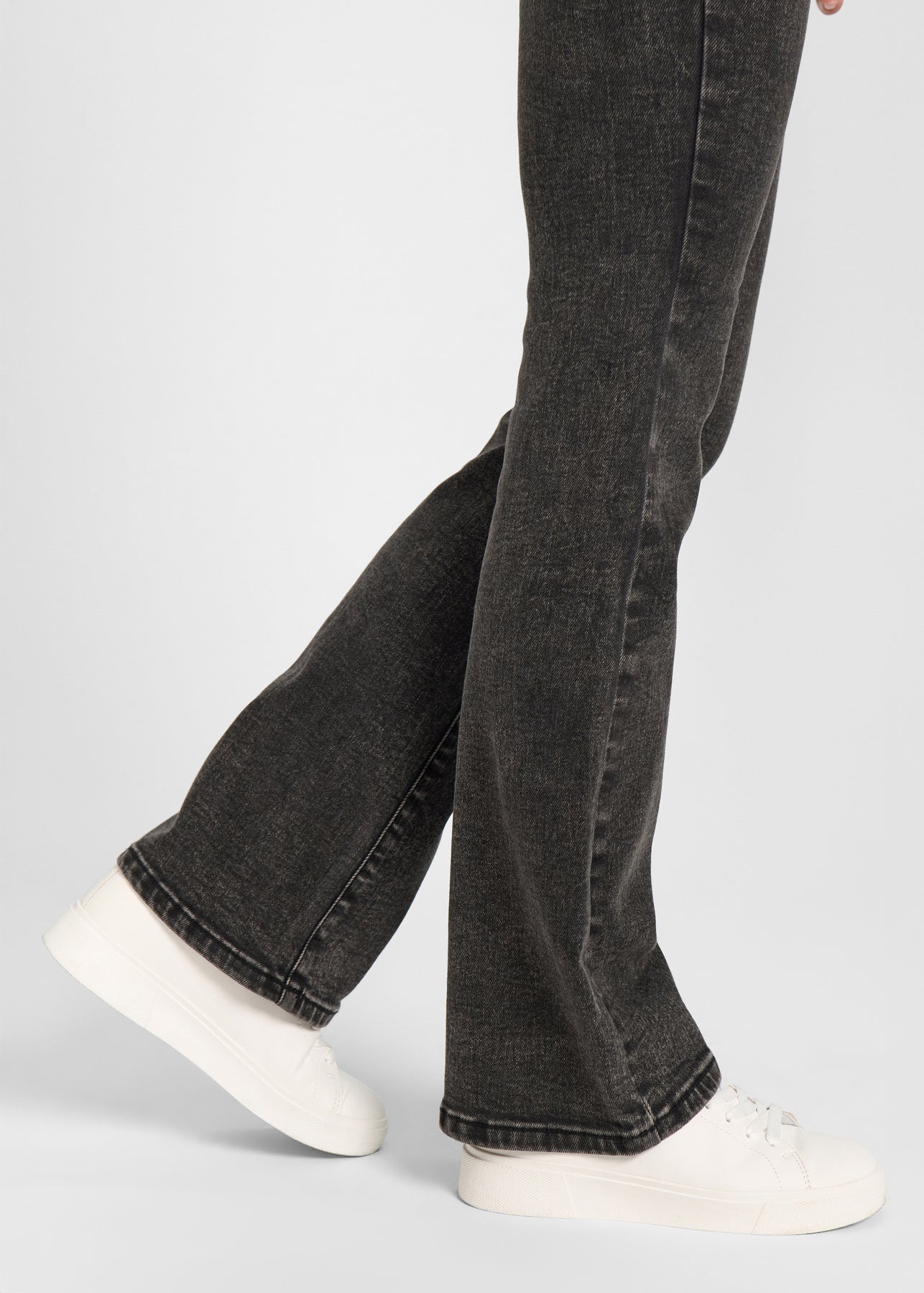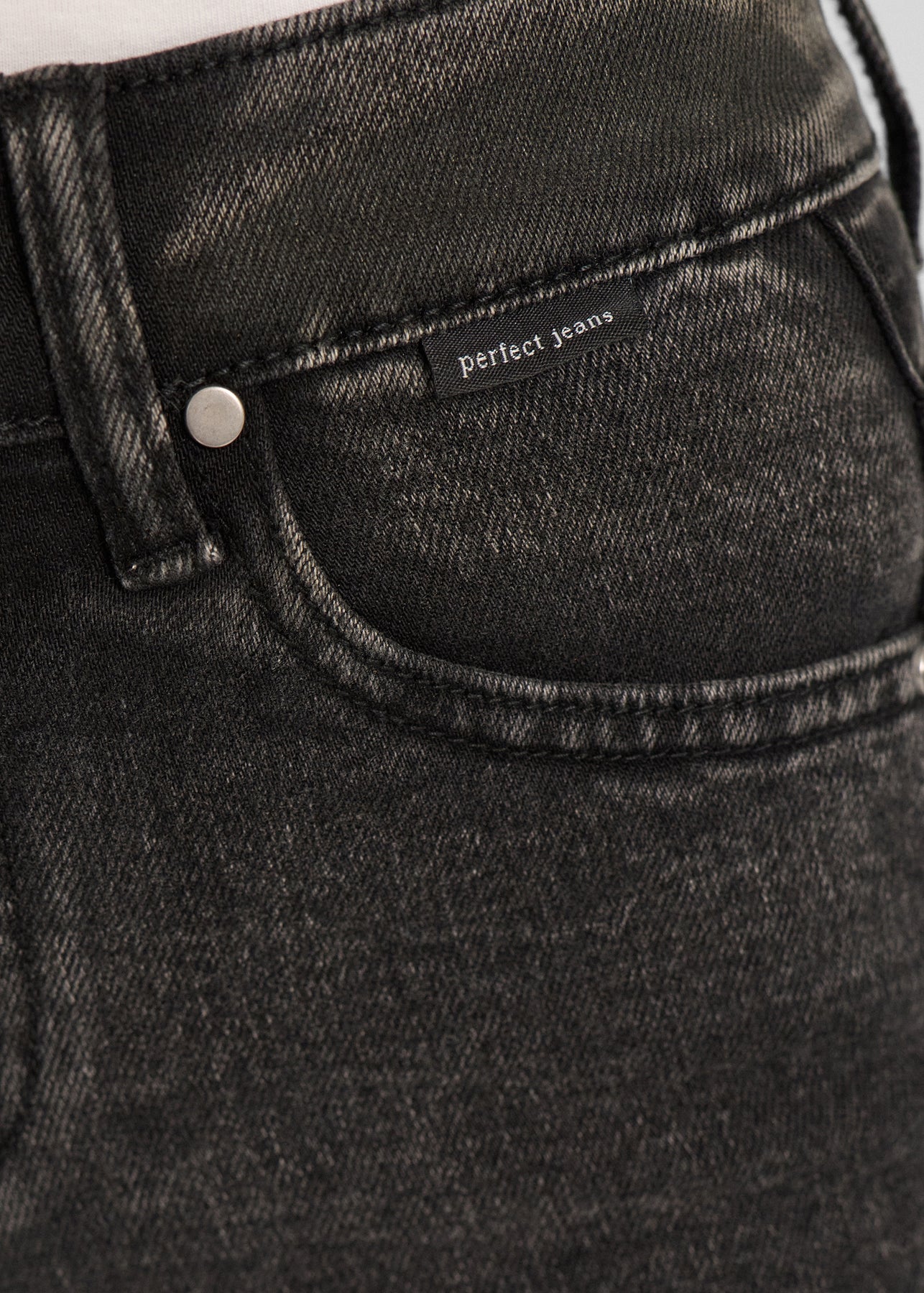 Mit Perfect Jeans - Bootcut - Shadows bekommst du eine dunkelgraue Jeans im klassischen und zeitlosen Denim-Look, mit all der Dehnbarkeit und Bewegungsfreiheit, die du von Perfect Jeans kennst. Unsere Bootcut-Jeans sind so konzipiert, dass sie eng an Taille, Hüften und Oberschenkeln anliegen und ab dem Knie elegant ausgestellt sind, was eine schmeichelhafte und elegante Silhouette schafft. Der Bootcut-Stil ist hoch tailliert und verfügt über zwei Taschen vorne und hinten. Die Jeans sind aus einem speziellen Gewebe gefertigt, das dafür sorgt, dass sowohl Farbe als auch Form auch nach häufigem Tragen und Waschen erhalten bleiben. Diese Bootcut-Jeans für Damen sind die perfekte Wahl für den Alltag und besondere Anlässe.