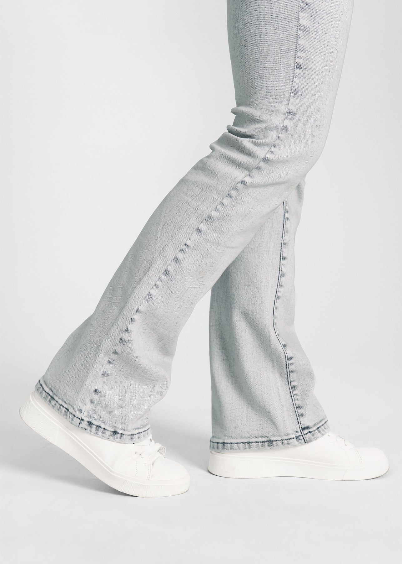 With Perfect Jeans - Bootcut - Ashes, you get the perfect light grey jeans for women in a beautiful denim look. We have reinvented denim with plenty of stretch and comfort, giving you jeans that feel just as good as they look. The bootcut fit sits close around the waist, hips, and thighs and flares slightly from the knee down, creating a flattering and stylish silhouette. The jeans are high-waisted and feature two pockets both at the front and back. They are made from a special weave that preserves both the colour and the fit of the jeans, even after many washes and wears. These light grey bootcut jeans for women are the perfect choice for both everyday wear and special occasions.