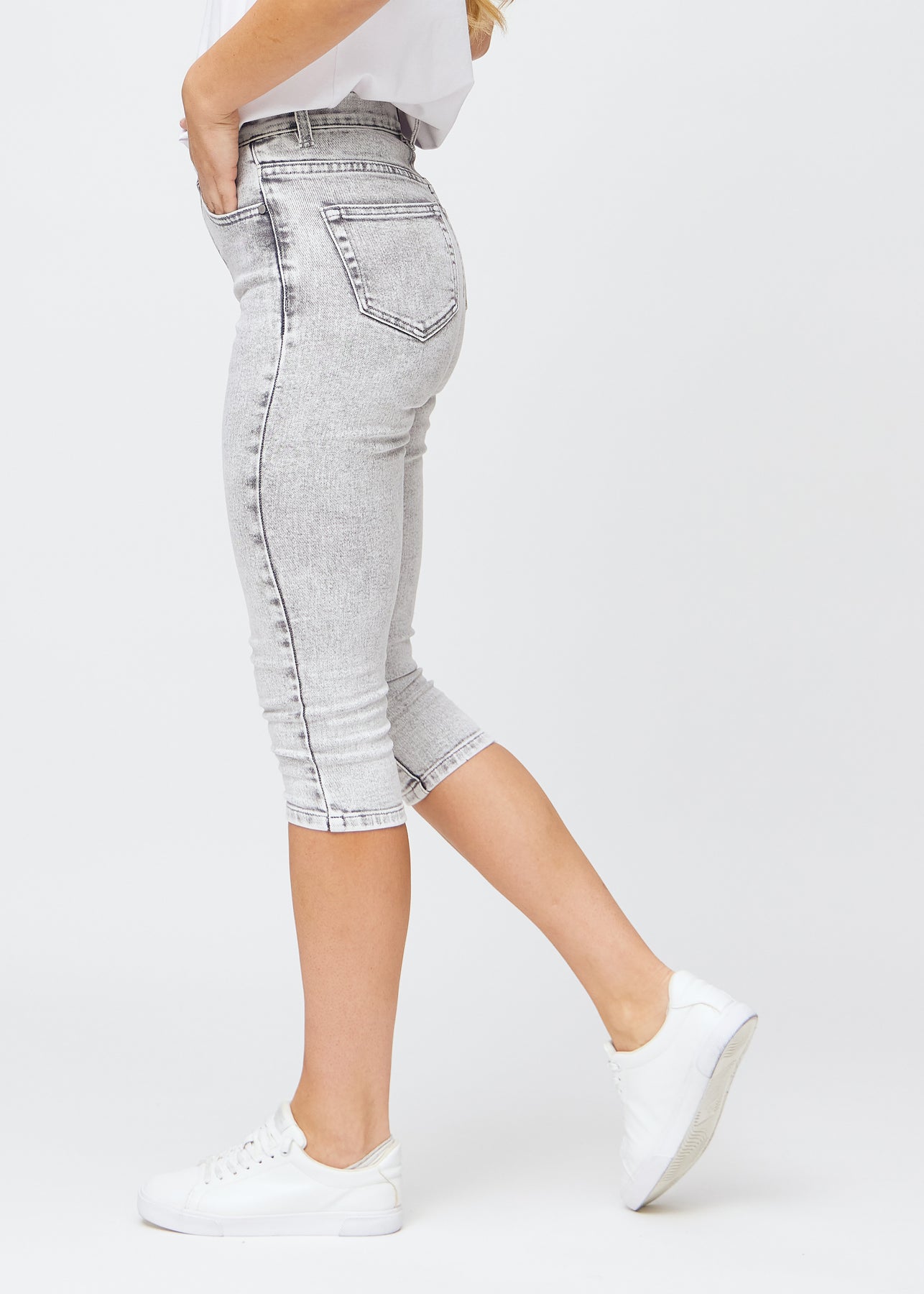Mit Perfect Capris – Skinny – Ashes erhältst du ein Paar hellgraue Capris für Damen in einem stilvollen Denim-Look. Unser Denim wurde in einer speziellen Webtechnik entwickelt, die ihn dehnbar, komfortabel und weich macht – für optimalen Komfort den ganzen Tag über. Unsere Skinny Capris haben einen hohen Bund und sind unser engstes Capris-Modell, mit zwei tiefen Taschen vorne und hinten. Die modernen grauen Denim-Capris behalten Form und Farbe auch nach mehrmaligem Waschen und Tragen – perfekt für jede Gelegenheit und Aktivität.